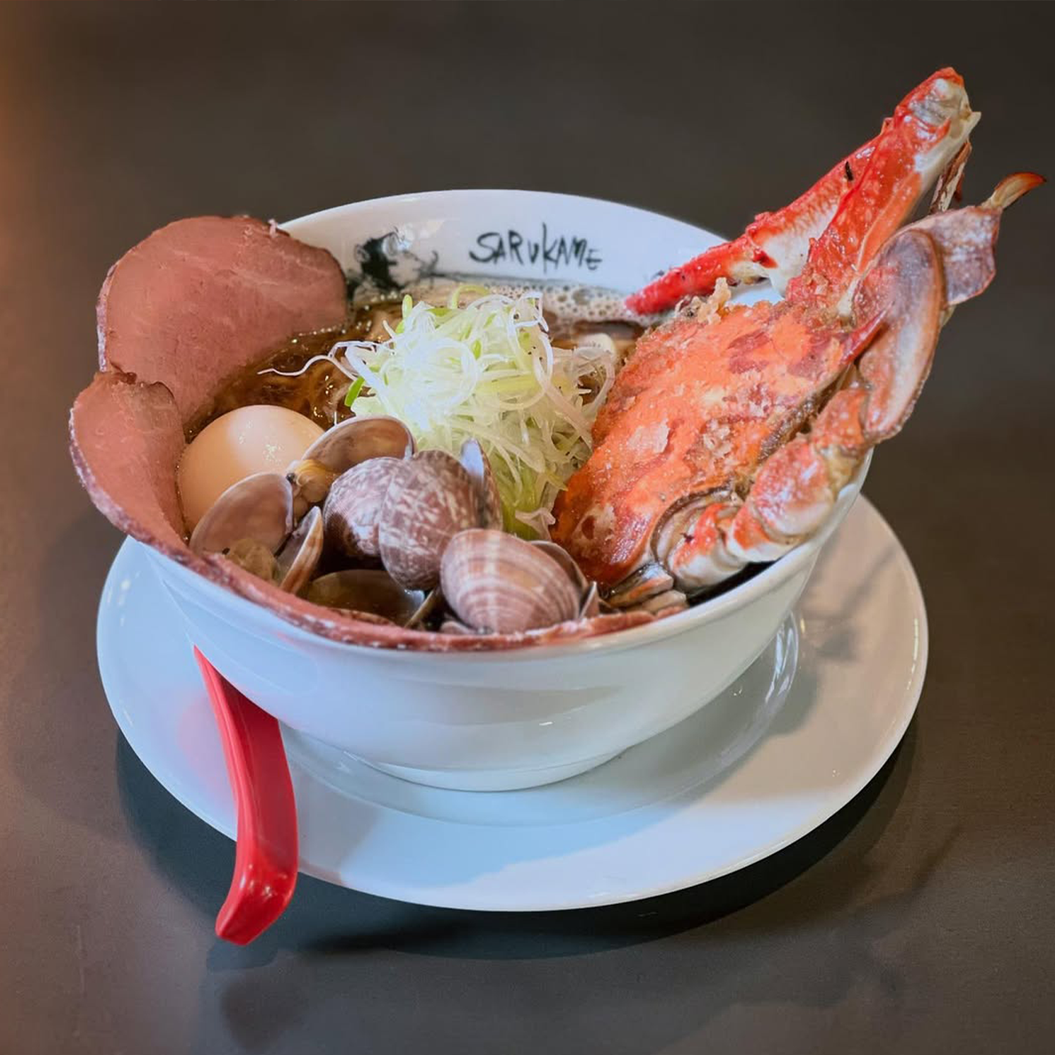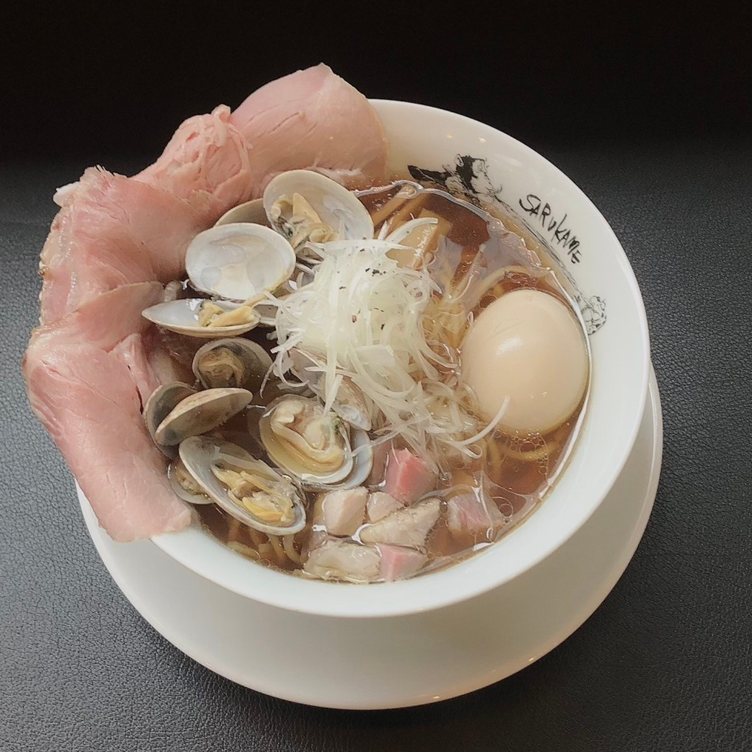 이곳을 단순히 맛집이라고 정의하면 섭섭할지도 모릅니다. 주문은 키오스크 방식이며, 에비스 맥주를 주문하면 시원하게 얼린 유리잔을 건네받는 센스도 놓치지 않지요. 자리마다 후추와 시치미가 놓여 있고, 라멘을 맛있게 먹는 법까지 가이드로 안내되어 있습니다. 바지락의 수가 몇 개인지 직접 발라보는 재미, 수란을 터뜨리는 순간의 찰나, 토치로 불향을 입히는 주방의 현장감까지—사루카메에서의 식사는 그저 ‘먹는 행위’를 넘어서 있습니다. 이 공간은, 맛의 깊이와 사람이 만든 이야기를 한 자리에서 경험할 수 있는 작은 세계입니다.