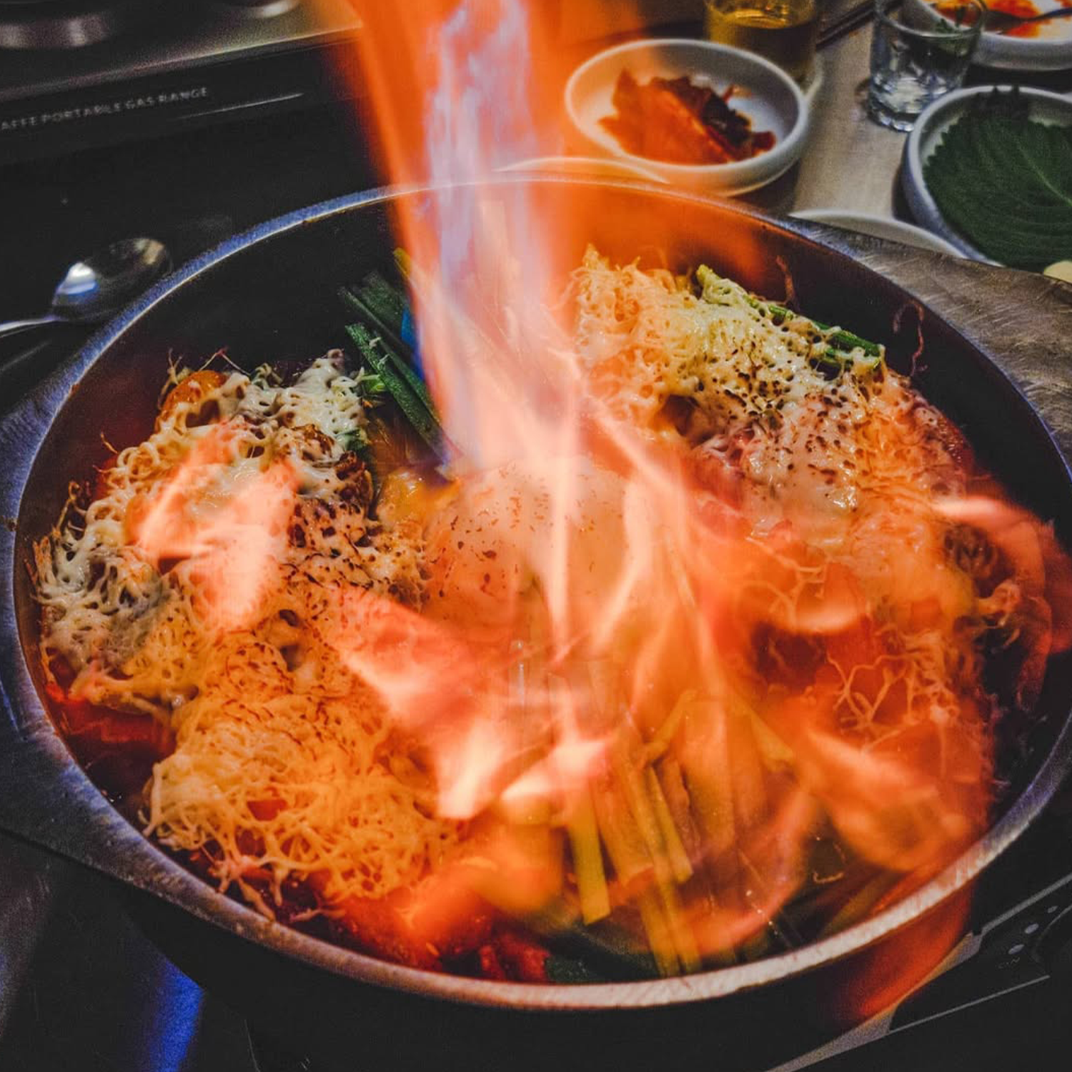 돼지곱창은 누군가에게는 도전이고, 또 누군가에게는 인생의 단골 메뉴입니다. ‘대팔이네’는 참숯으로 훈연해 특유의 잡내를 없앤 곱창을 내놓으며, 입문자들에게도 편안한 시작을 선물합니다. 매장에서 손질한 곱창은 부추, 양파, 소스와 함께 즐기는 기본 모둠부터, 깐풍기 스타일 신메뉴, 치즈 불쇼가 더해진 직화곱창까지 다양하게 구성되어 있어 매번 다른 재미와 풍미를 선사하죠. 특히 저녁 6시 전 방문하면 곱창전골 할인과 소주 1+1 혜택까지 — 말 그대로 혜자로운 곱창의 세계가 펼쳐집니다.