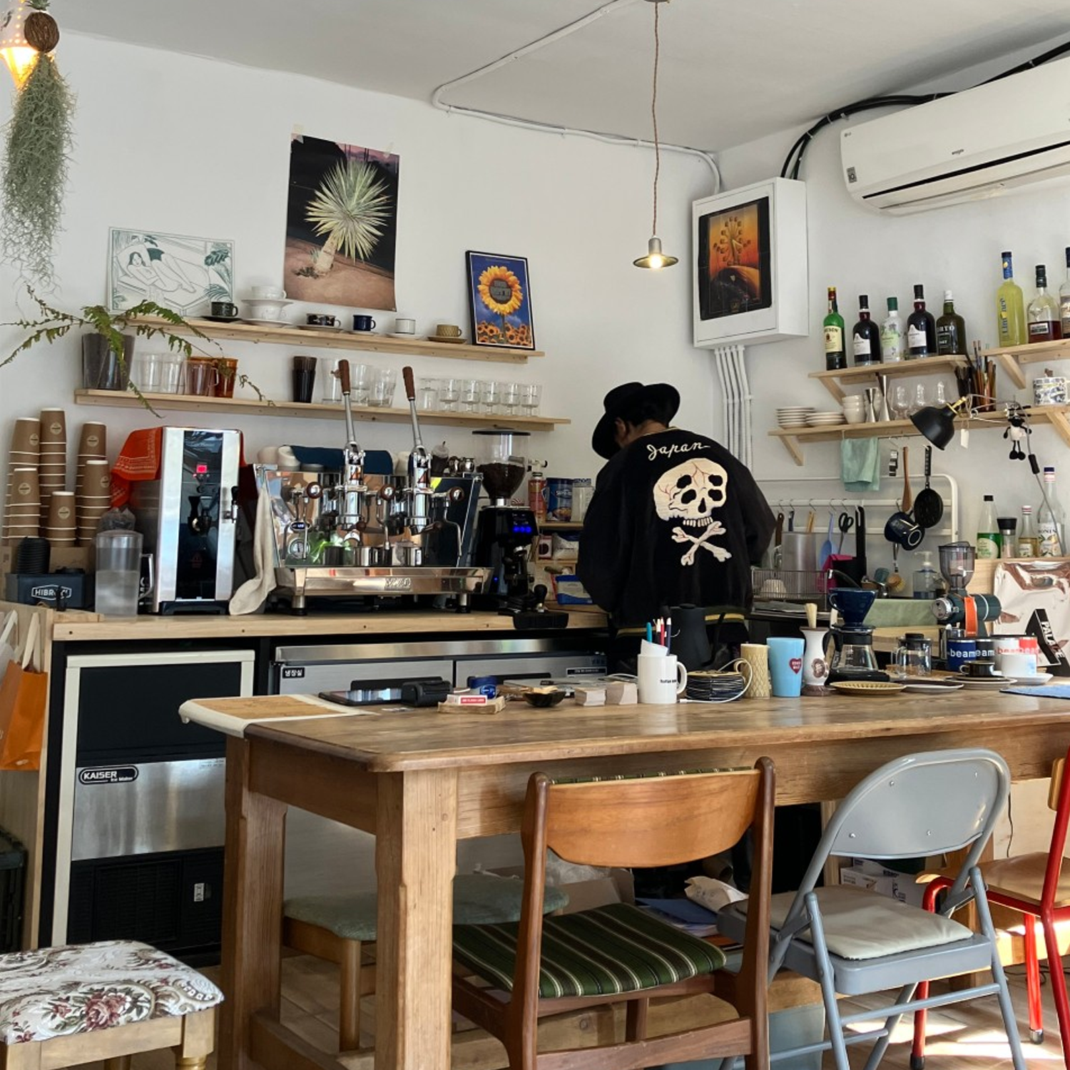하츠코히의 첫인상은 마치 오래된 일본 영화 속 장면을 그대로 옮겨놓은 듯합니다. 골목 모퉁이에서 미닫이 문을 열고 들어서면 작은 공간 안에 소품과 포스터가 빼곡히 들어차 있고, 은은한 조명이 그 위로 부드럽게 흘러내립니다. 모든 것이 반듯하게 정돈된 카페와 달리 이곳은 조금 엉성하고, 조금은 즉흥적이며, 그래서 더 따뜻하게 다가옵니다. 소품 하나에도 오너의 취향이 스며 있어, 마치 누군가의 집에 초대받은 듯한 편안함이 느껴지지요. 카페라기보다는 ‘거실 같은 공간’이란 표현이 더 어울릴지도 모르겠습니다. 이곳에서 커피를 마시는 일은 단순한 소비가 아니라 작은 시간을 빌려 사는 듯한 특별한 경험이 됩니다.