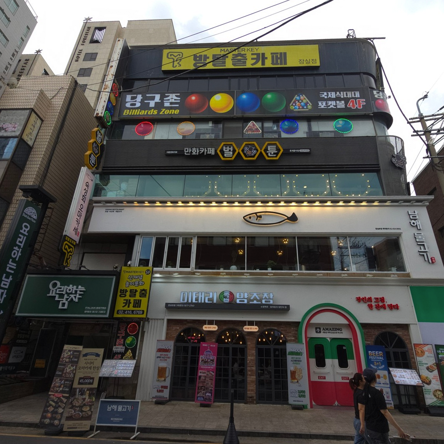 잠실새내역 먹자골목 안쪽, 3층에 자리한 벌툰 엔틱 잠실새내점은 ‘만화방’이라는 오래된 이미지를 완전히 새롭게 바꿔낸다. 노란색과 검정색이 조화를 이룬 인테리어와 벌집을 닮은 소굴방은 이곳만의 시그니처. 특히 특허출원된 벌집 구조 룸은 개그맨 박명수도 반할 만큼 독특하다. 혼자 조용히 책을 보고 싶을 때, 혹은 둘만의 아늑한 시간을 보내고 싶을 때 다양한 형태의 룸이 준비되어 있어 선택의 즐거움이 있다. 깔끔한 청결 상태는 기본, 위생 관리가 잘 되어 있어 오래 머물러도 편안하다. 과거 만화방의 단순한 독서 공간에서 벗어나, 지금은 세련된 복합문화공간으로 자리 잡은 것이다.
