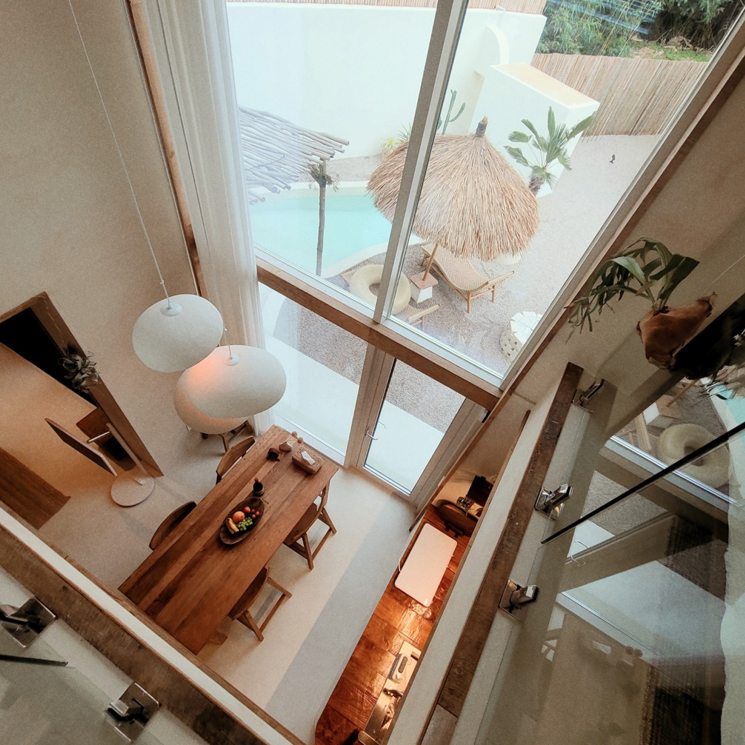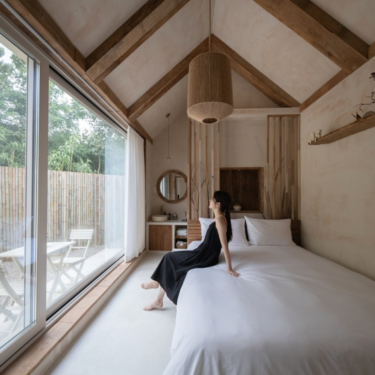 뭇별은 본채와 별채를 모두 이용할 수 있는 독채 풀빌라입니다. 본채의 거실은 세련된 인테리어와 스탠바이미, LP 플레이어로 채워져 있어 여행지에서도 집처럼 편안하면서도 색다른 감각을 느끼게 합니다. 주방에는 냉장고와 전자레인지, 커피머신과 정수기까지 모든 것이 갖춰져 있어, 준비된 조식 재료로 여유로운 아침 식탁을 즐기기에도 충분합니다. 2층 침실에는 퀸과 슈퍼싱글 침대가 마련되어 있어 가족 단위 여행객에게도 알맞고, 창가에 놓인 자쿠지에 앉으면 부남해변이 시야에 들어와 감탄을 자아냅니다. 반신욕을 하며 바라본 바다는 마치 액자 속 풍경처럼 잊히지 않을 장면으로 남습니다.