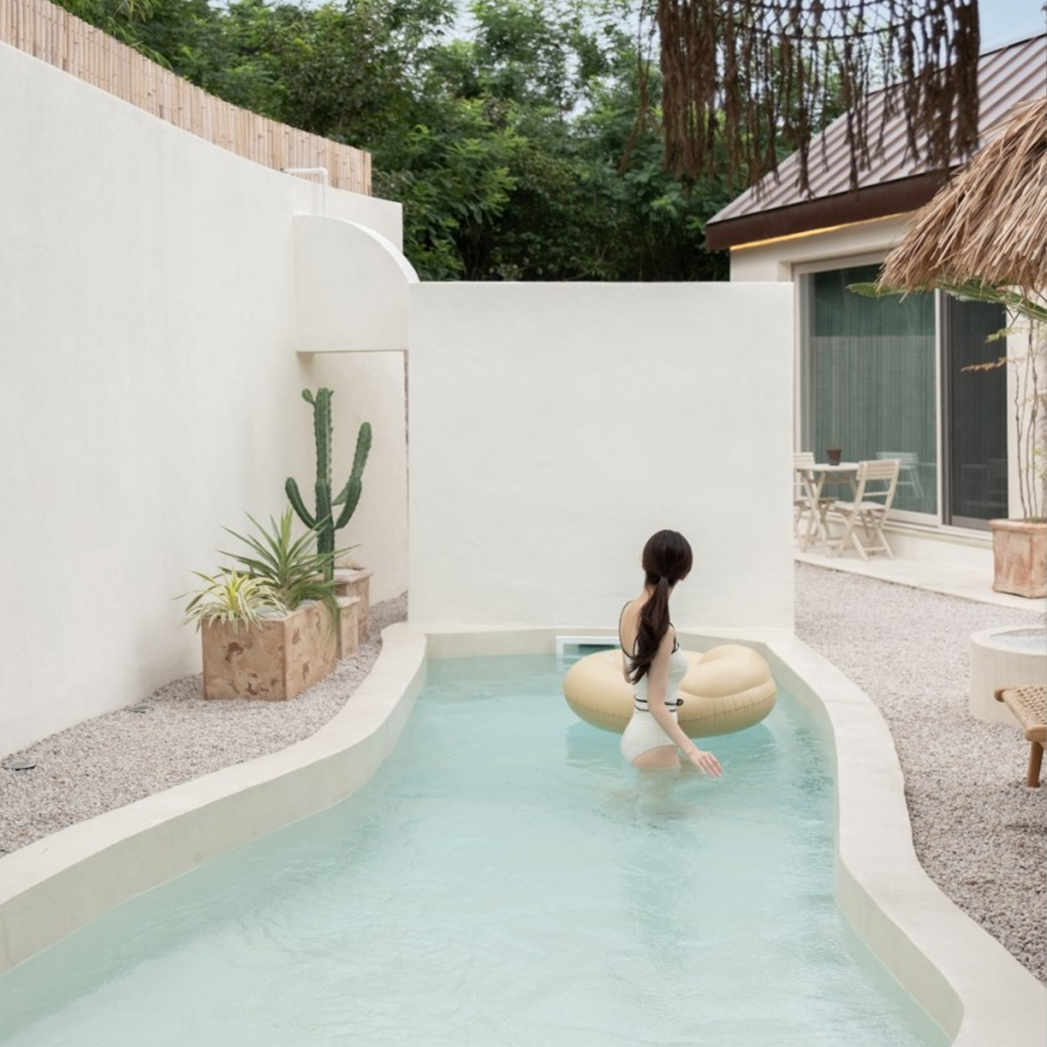 지친 마음에 바다가 필요할 때, 삼척의 부남해변이 불러낸 이름 하나가 있습니다. 바로 ‘뭇별’. 바쁜 일상 끝에 우연처럼 잡힌 취소표가 인연이 되어 찾아간 이곳은, 이름 그대로 밤하늘의 별처럼 반짝이는 시간을 선물합니다. 숙소에 닿기 전부터 느껴지는 조용한 공기와, 문을 열고 들어서며 맞이한 흰 건물과 작은 수영장의 풍경은 그 순간부터 여행의 무드를 바꿔놓았습니다. 부남해변까지 도보 10분, 인파가 적은 바다와 감각적인 숙소가 어우러진 조합은 흔치 않은 호사였지요.