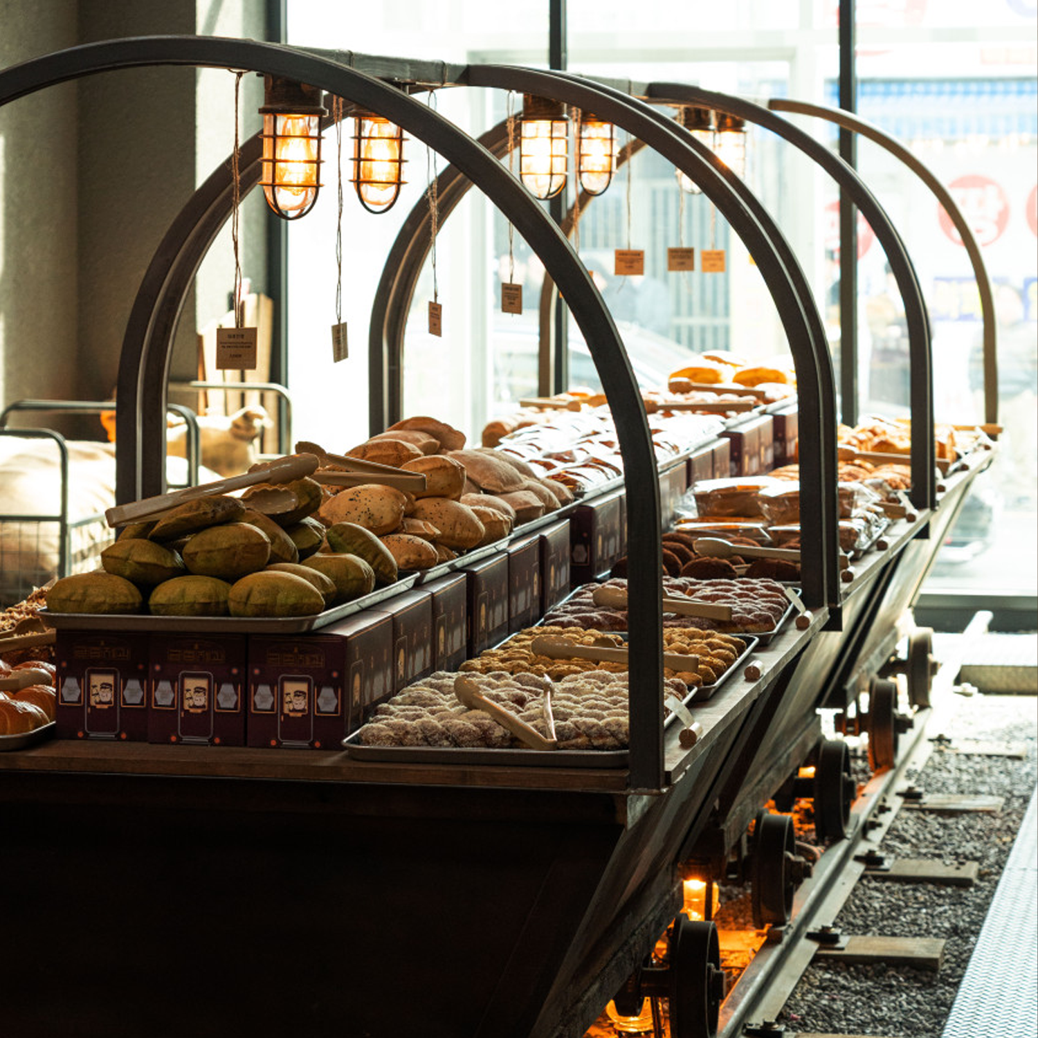 3층 창가에 앉아 있으면 유리창 너머로 익산의 오래된 거리 풍경이 펼쳐집니다. 사람들의 웃음소리와 커피 향이 겹쳐지며, 마치 여행의 중간역에 도착한 기분이죠. 매장은 넓고 쾌적하며, 곳곳에 놓인 철제 장식과 기차 테마 소품이 공간의 감도를 완성합니다. 여행객이든, 익산의 주민이든 모두에게 ‘하루를 쉬어갈 이유’를 만들어주는 제과점. 금종제과는 익산의 시간을 구워내는, 달콤한 역사서 같은 공간입니다.