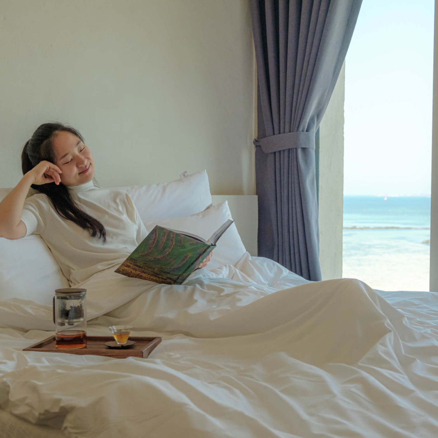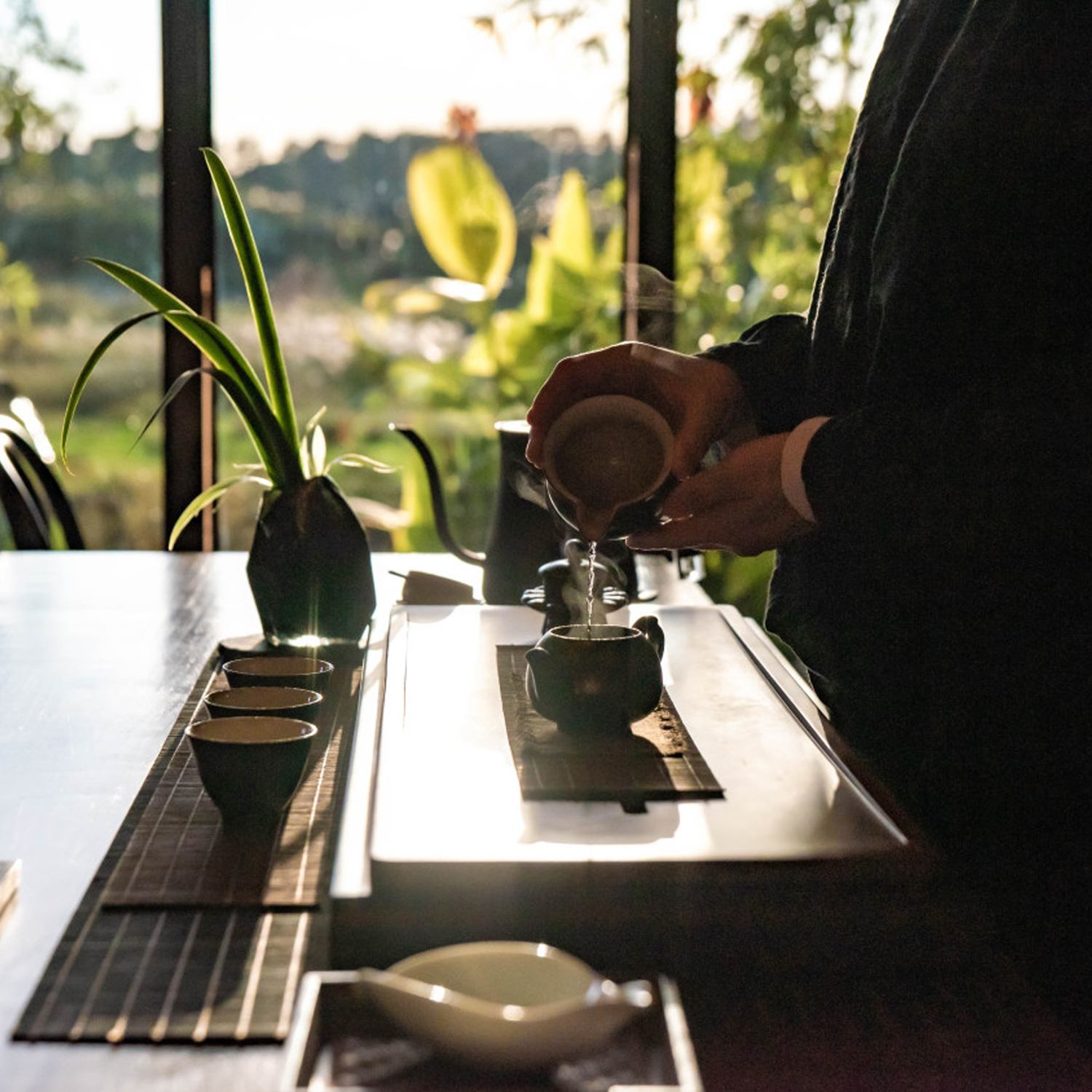 취다선의 하루는 리듬이 분명합니다. 아침의 햇살이 바다 위로 번지면, 조용히 요가 매트 위에 앉아 호흡을 고릅니다. 오전그리고 해질녘. 하루 네 번의 요가·명상 세션은 몸의 긴장을 풀고, 마음의 방향을 다시 세우는 작은 의식 같은 시간이에요. 이 시간 동안 강사는 몸의 움직임보다 ‘느끼는 감각’을 강조합니다. 지금 이 순간 내 몸이 어디에 닿아 있는지, 내 마음이 어떤 호흡을 하고 있는지를 하나씩 느껴보는 일. 그리고 차실에서는 40분간의 프라이빗 다도 클래스가 열립니다. 찻잎이 피어오르는 소리와 향기 속에서, 한 모금의 따뜻한 차가 내면의 파동을 차분히 가라앉힙니다. 단순한 다도 체험이 아닌, 오감을 여는 명상의 한 장면이죠. 이 모든 과정을 통해 사람들은 ‘생각하지 않는 법’을 배웁니다. 오직 감각으로 존재하는 연습. 그것이 취다선이 선사하는 진짜 휴식의 형태입니다.