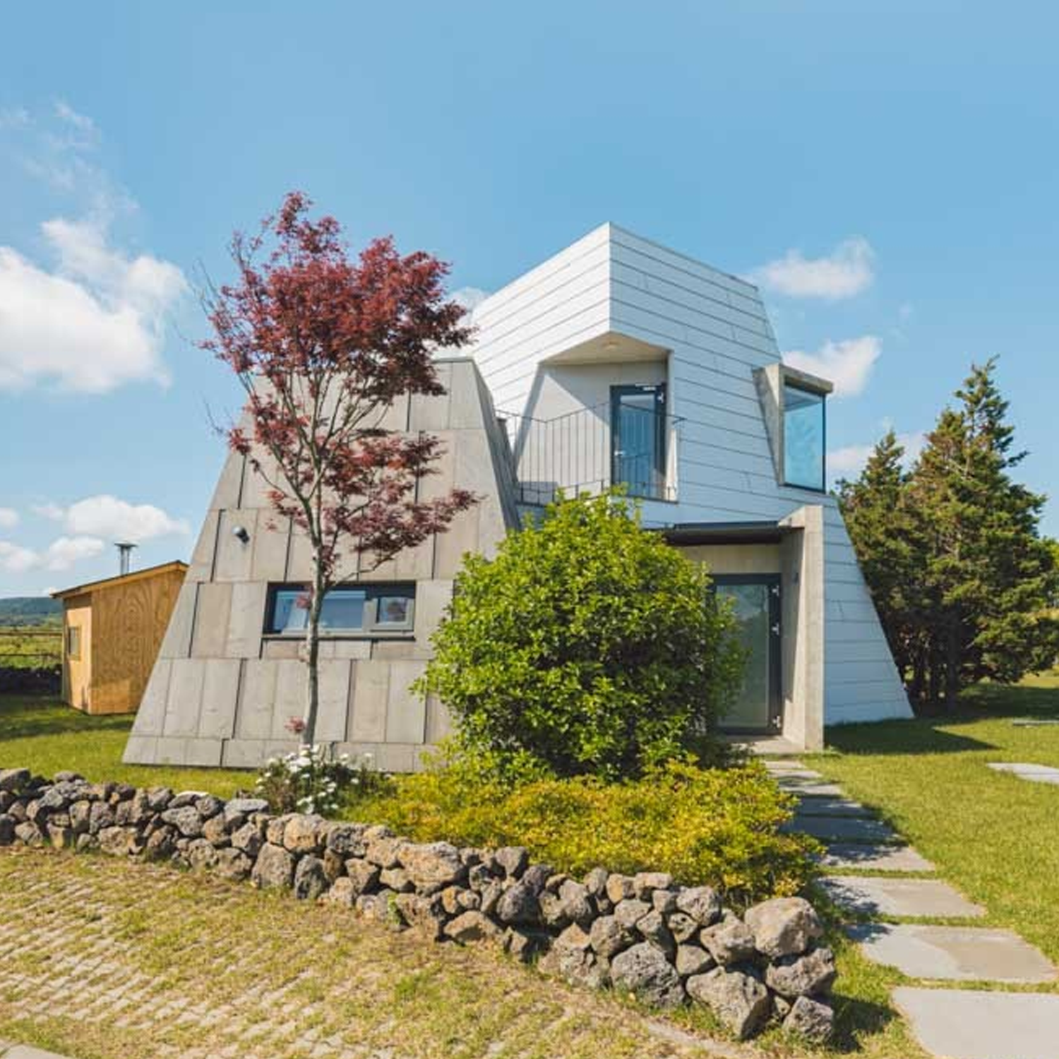 돌담과 억새, 바람과 햇살이 교차하는 제주 중산간 마을에 하얀 지붕의 집들이 나란히 서 있다. 이름은 어라운드폴리(Around Follie). ‘도심을 벗어나 자연을 중심으로 돌아가자’는 뜻을 품은 공간이다. 처음 마주한 풍경은 단정하고, 공기는 투명하다. 잔디밭 위로 길게 드리운 석양이 롯지의 하얀 외벽을 물들이면, 아이들은 그 사이를 뛰놀고 어른은 고요한 바람에 귀를 기울인다.