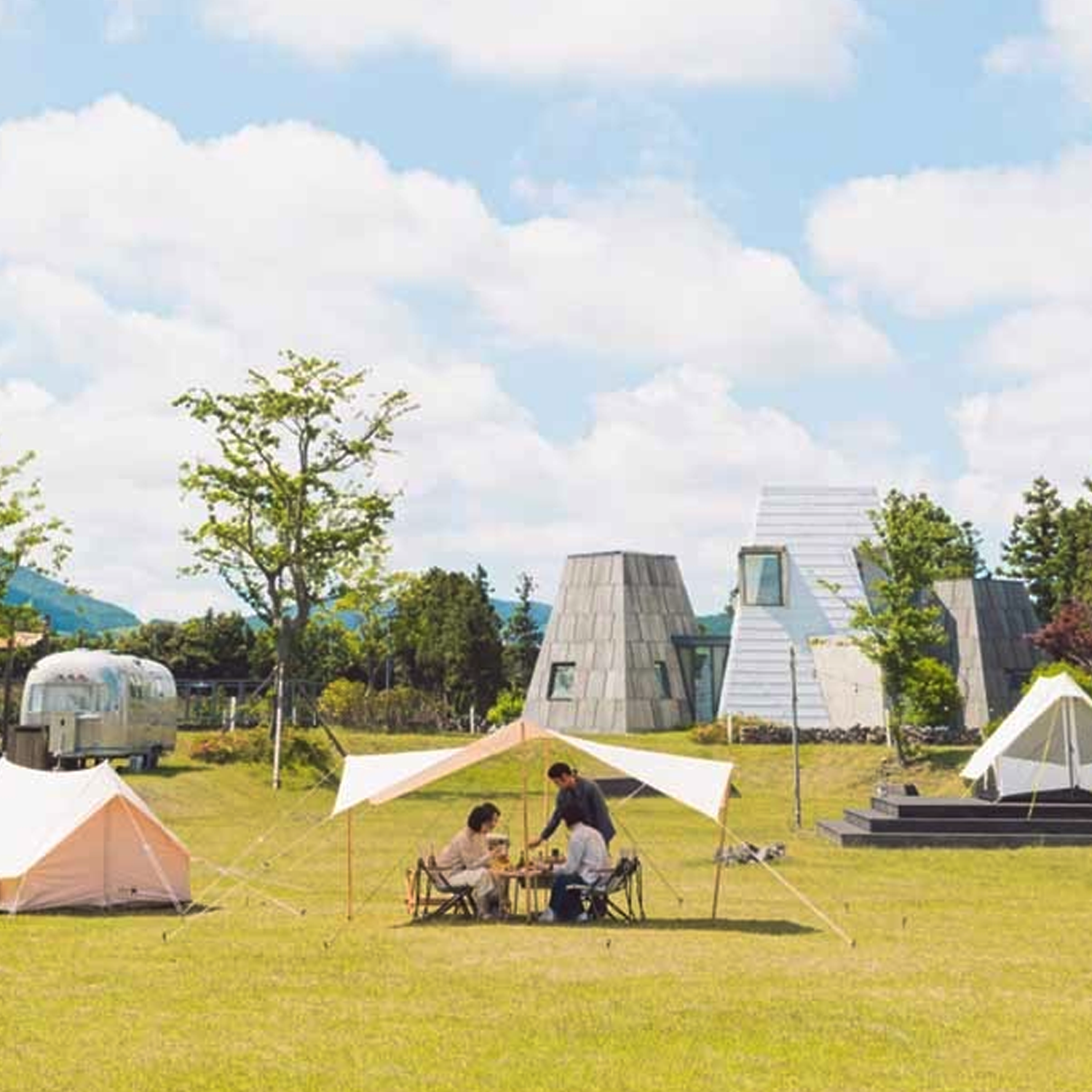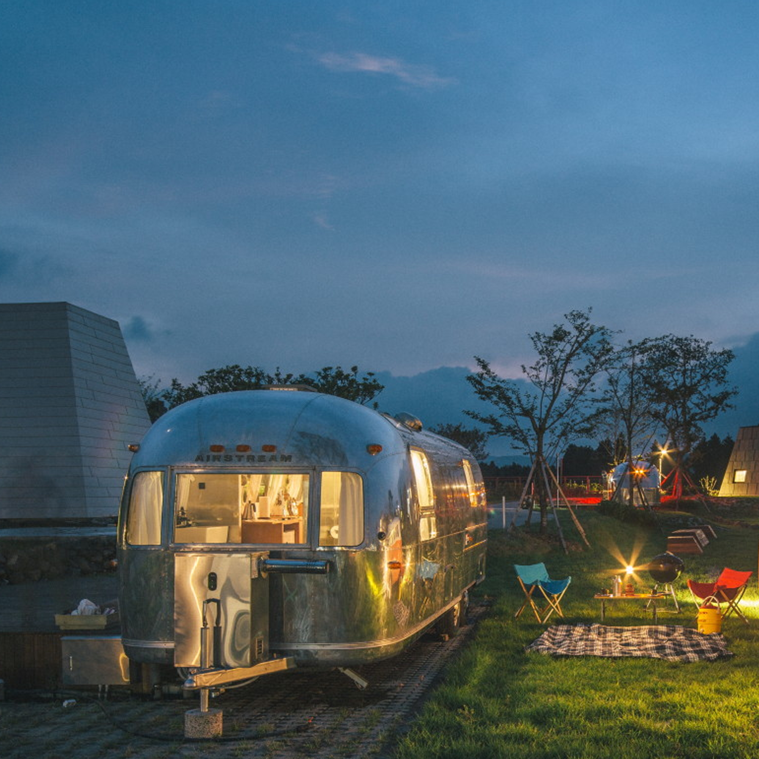 2층 구조의 롯지 스위트는 개별 데크와 노천탕, 그리고 높은 천장이 주는 개방감으로 만족도가 높다. 주방 창으로 들어오는 햇살 아래 아침 식사를 하거나, 해먹에 누워 구름을 잡는 아이의 웃음소리를 듣는 일, 그 자체가 제주의 여행이 된다. 캐빈과 에어스트림은 한층 더 아늑하다. 하늘을 향해 열린 창과 나무향이 은은한 인테리어, 그리고 밤공기를 느낄 수 있는 작은 데크. 불멍을 하며 제주 하늘의 별을 올려다보는 순간, ‘쉼’이 무엇인지 새삼 알게 된다.